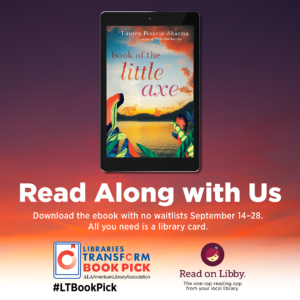 Book of Little Axe is available for immediate download from September 14 through 28. (Patrons who download the book at the end of the open period will have the normal check-out time to read it.) If you’re a book club member, consider this book for your next read, and download group discussion questions here.