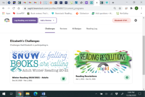 To participate, you will need to create an account in Beanstack.com. If you’re participating in Winter Reading, or if you did 2020 Summer Reading, you already have one. Not sure? Ask an Adult Services staff member for help.